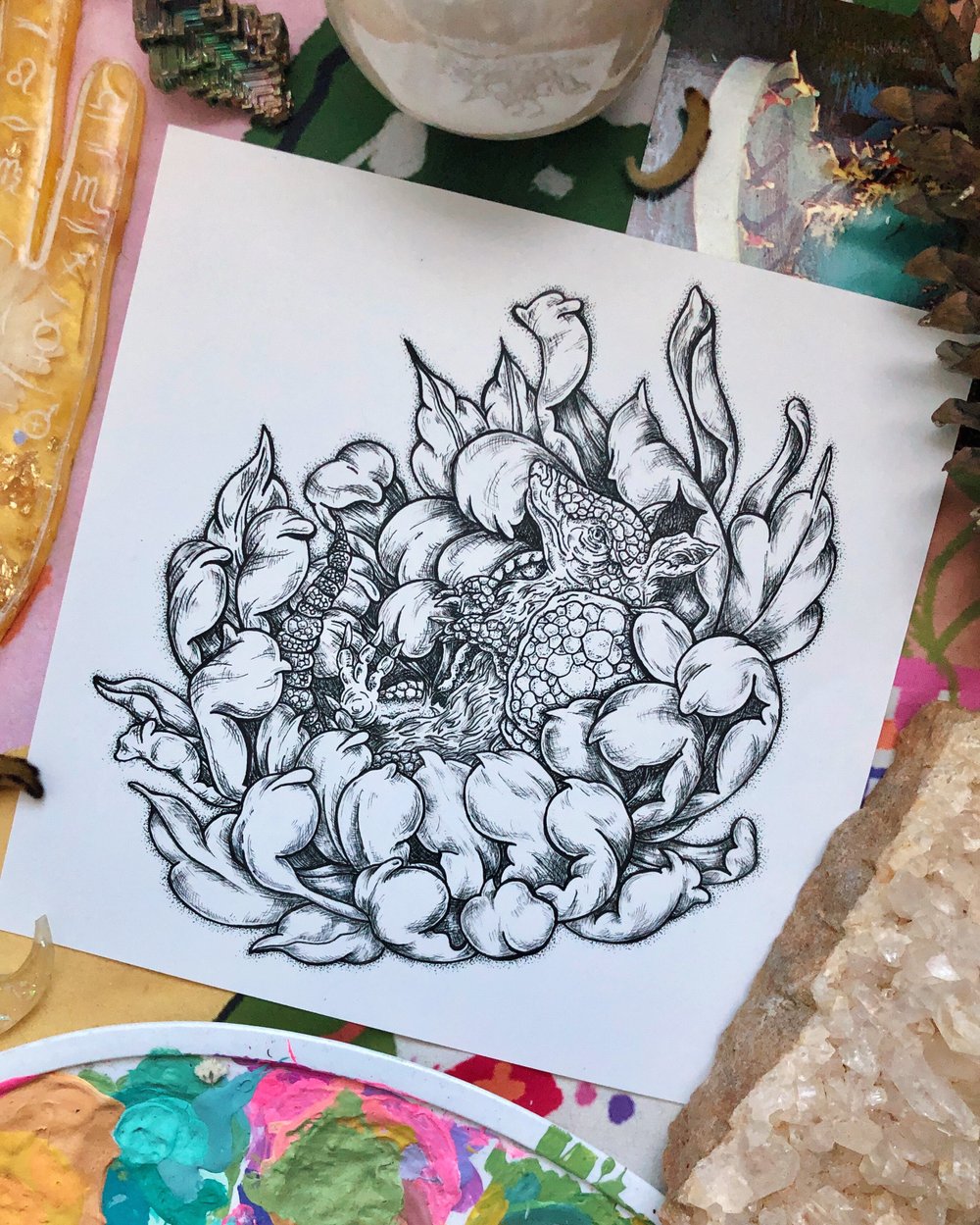 Original was hand drawn with archival quality illustration pen on 8x8 inch drawing paper.