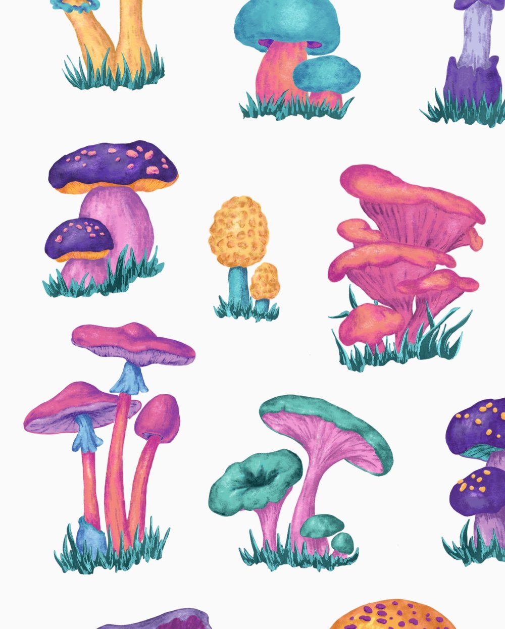Digital Drawing Via Procreate. Inspired by vintage mushroom classification charts.