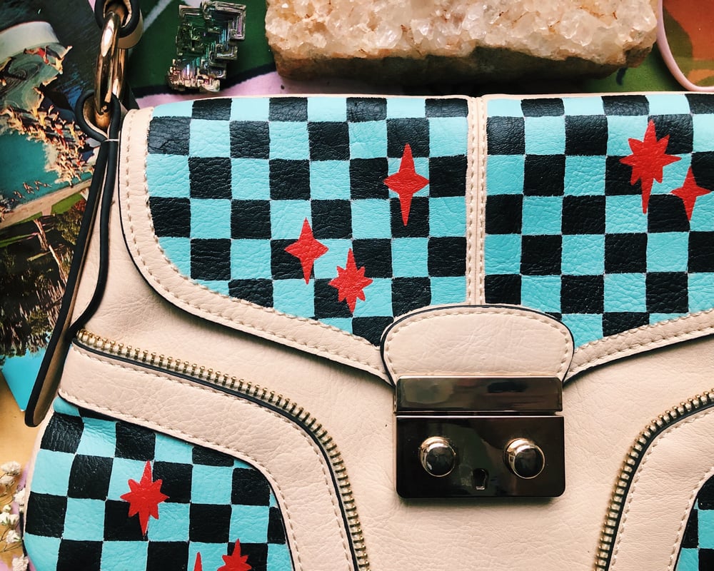 The Willa purse is hand-painted on cream white vegan leather.